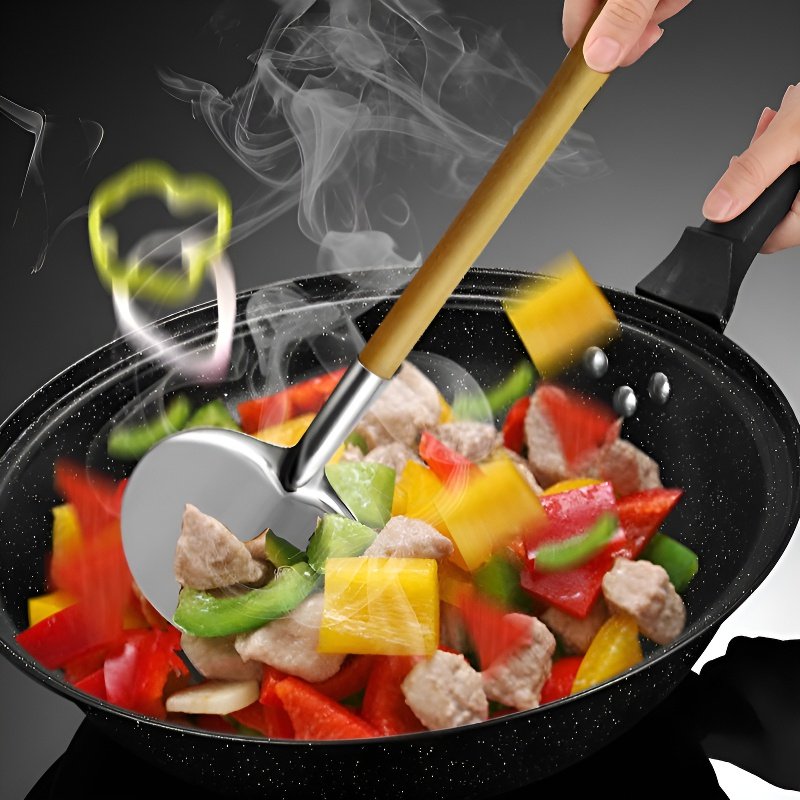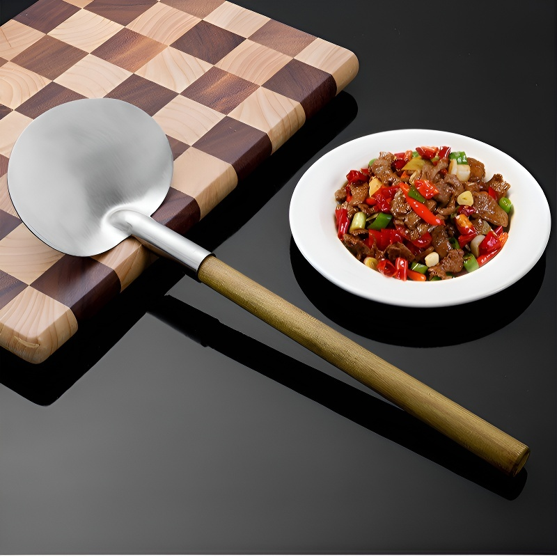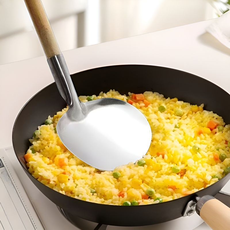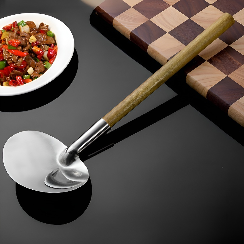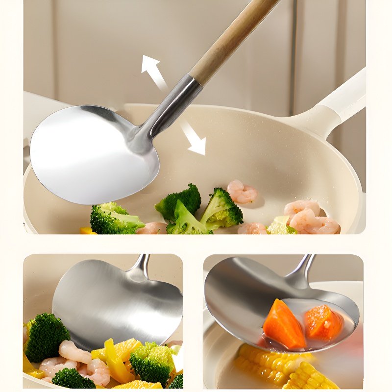 Solid Wood Handle Nonstick Pan Round Stir-fry & Turner Spatula