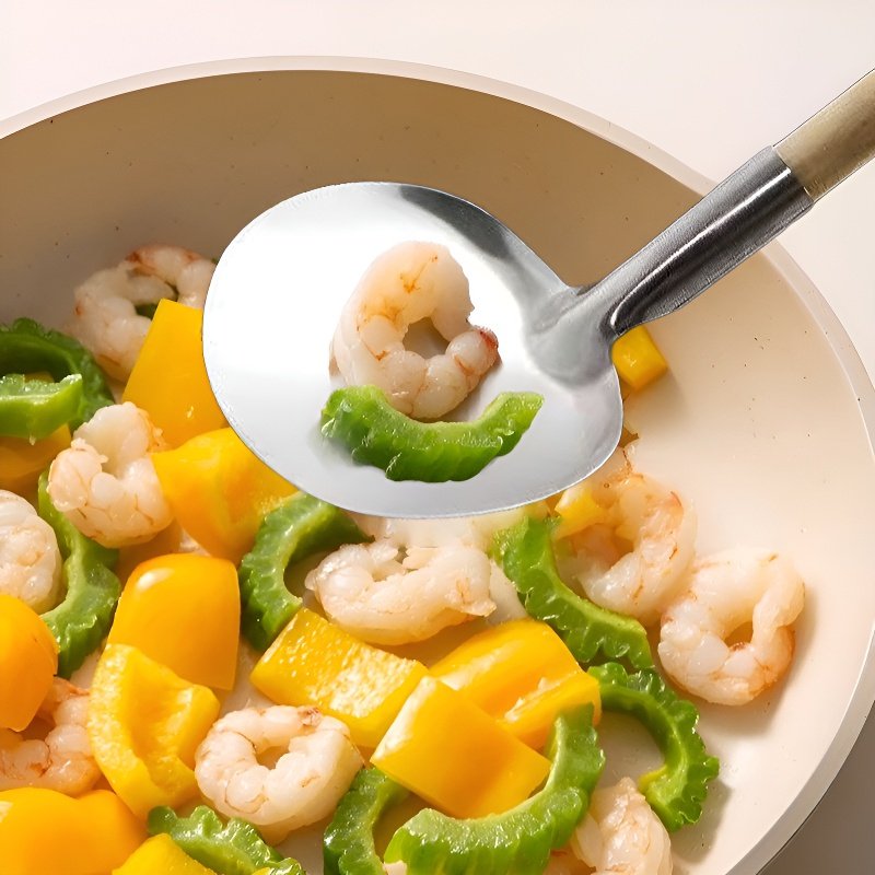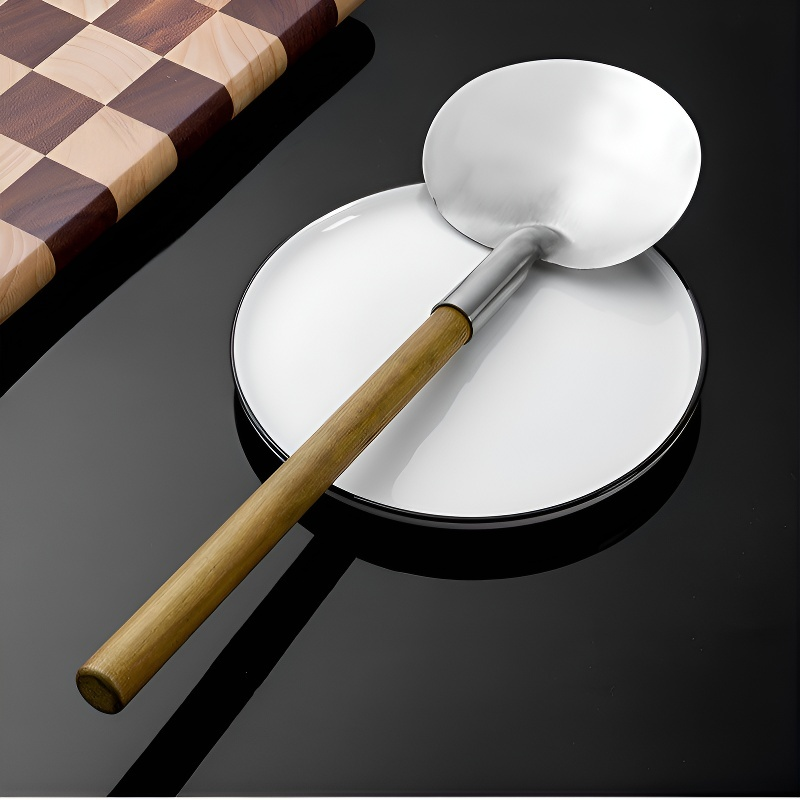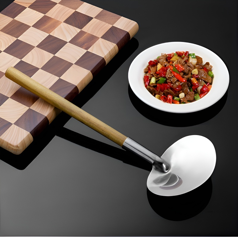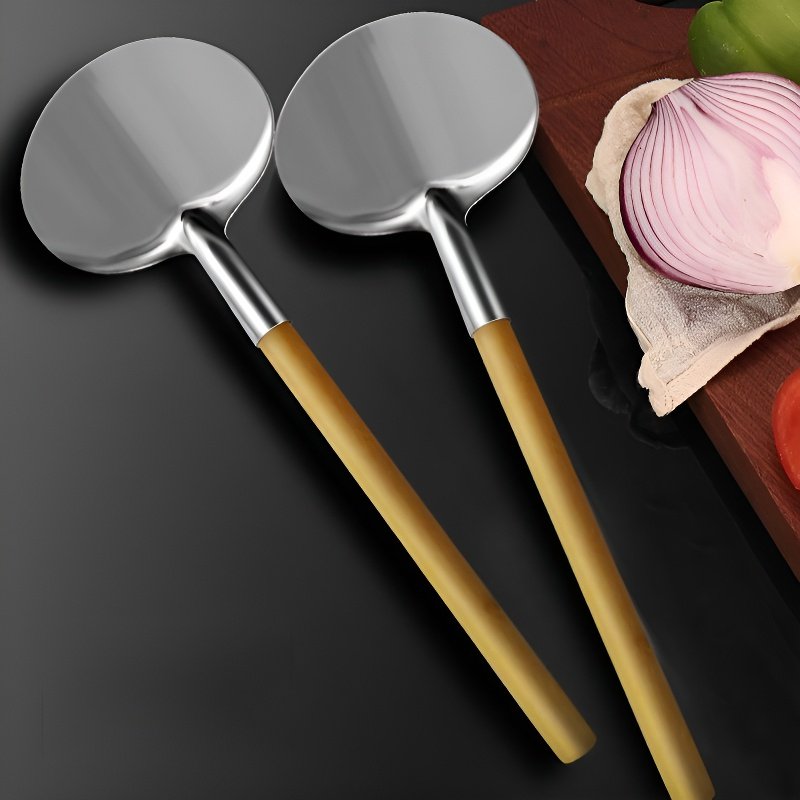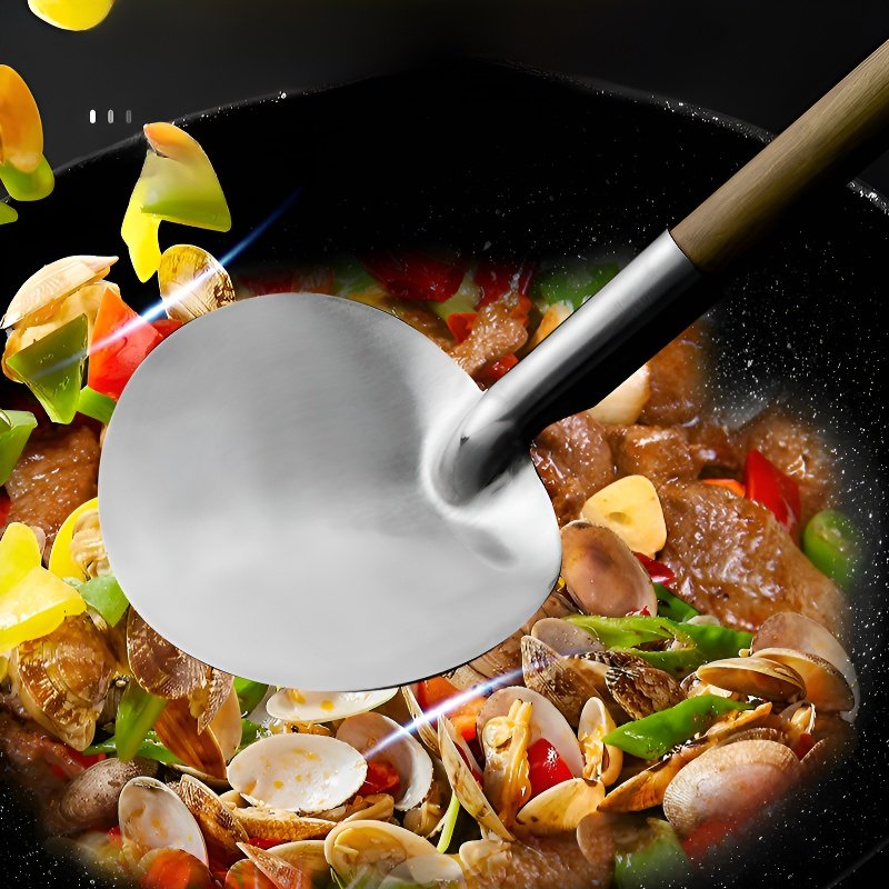 Solid Wood Handle Nonstick Pan Round Stir-fry & Turner Spatula
